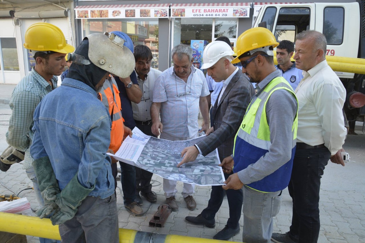 Turan Mahallesi 24 Mayıs Caddesi’nde start alan doğal gaz çalışmalarını Sarayköy Belediye Başkanı Ahmet Necati Özbaş, Belediye Başkan Yardımcısı Mestan Özkan ve AK Parti Meclis Üyesi Hakan Gültekin yerinde inceledi.