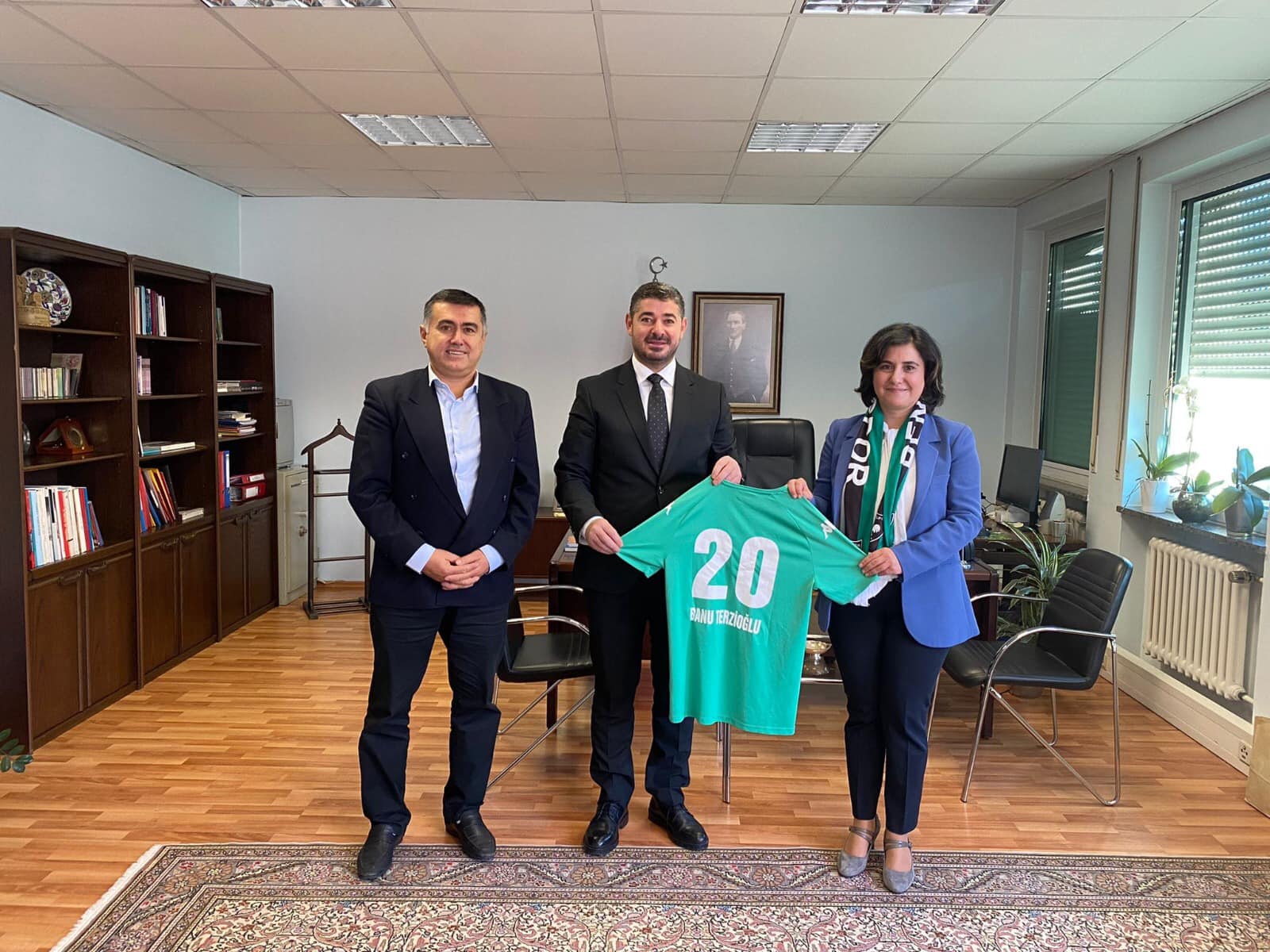 A. Denizlispor Başkanı Mehmet Uz, Almanya’da görüşme ve ziyaretlerde bulundu. Çalışmaları hakkında Başkonsolos Banu Terzioğlu’na bilgi verirken üzerinde ismi olan 20 numaralı forma hediye etti. Terzioğlu teşekkürlerini ve başarılarının devamını diledi.