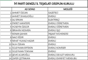 İYİ Parti Denizli İl Disiplin Kurulu :