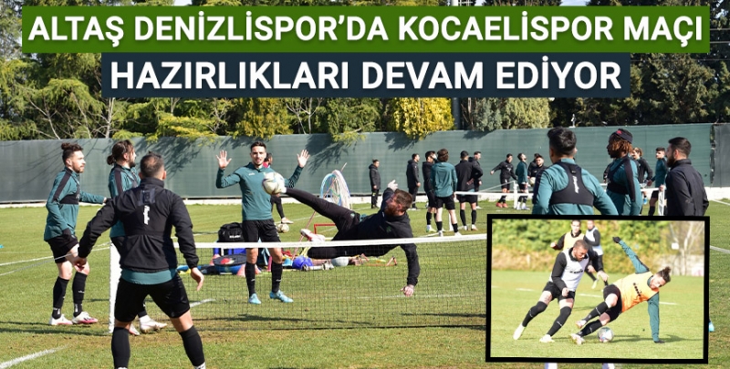 Altaş Denizlispor, TFF 1. Lig'in 30. haftasında deplasmanda karşılaşacağı Kocaelispor maçının hazırlıklarına devam ediyor. Horoz, ligde en son maçını 28. haftada 7 Mart'ta Balıkesirspor ile deplasmanda oynamış ve 1-0 galip gelmişti. 29. haftayı bay geçecek olan yeşil siyahlılar, TFF tarafından müsabakaların 1 hafta erteleneceği haberi üzerine 2 hafta boyunca maç oynamamıştı.