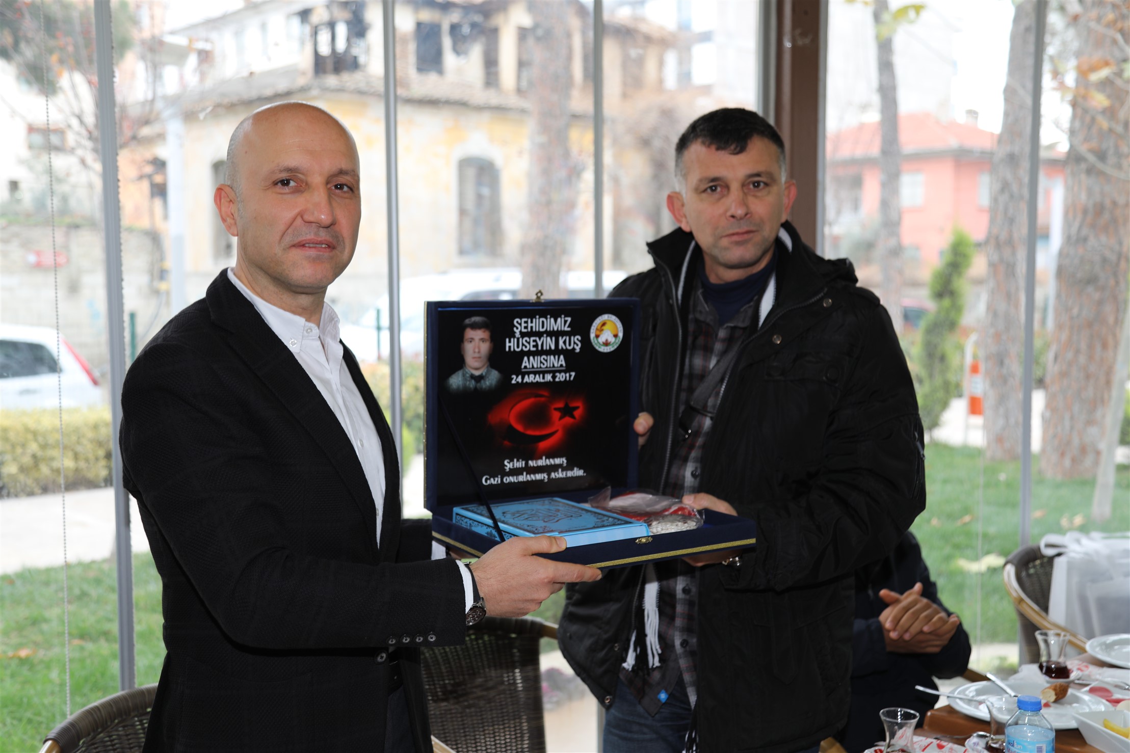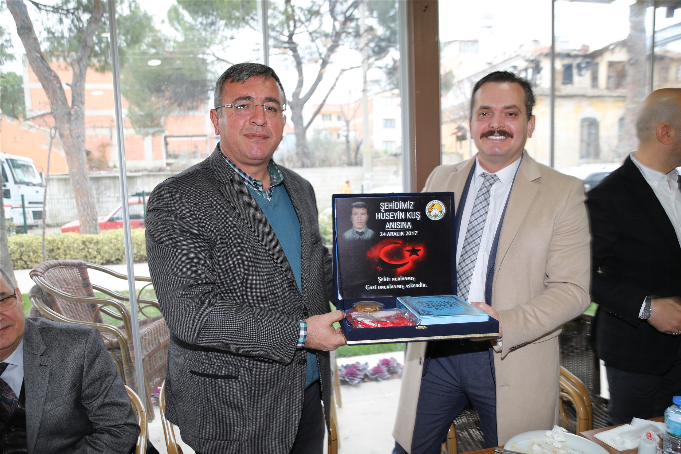 Konuşmaların ardından Belediye Başkanı Özbaş tarafından Şehit Hüseyin Kuş anısına, silah arkadaşlarına ay yıldızlı bayrak ve Kuran-ı Kerim’den oluşan hediyeler takdim edildi.
