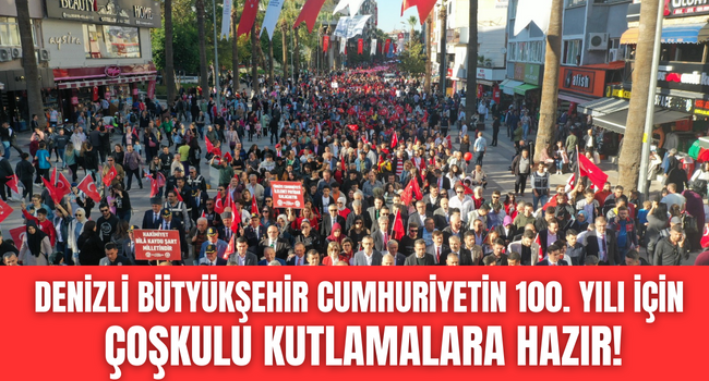 Cumhuriyet'in kuruluşunun 100. yıldönümü kutlamaları kapsamında spordan sanata, kültür buluşmalarından konferanslara, anma programlarından konserlere birçok etkinlik ve organizasyona imza atan Denizli Büyükşehir Belediyesi, kentte bayram coşkusunun doyasıya yaşanması için tüm hazırlıklarını tamamladı. Ana cadde ve bulvarlar başta olmak üzere Denizli’nin birçok bölgesine binlerce Türk bayrağı asan Denizli Büyükşehir Belediyesi, şehri kırmızı beyaz renklere bürüdü. Denizli Büyükşehir Belediyesi ayrıca Cumhuriyet'in kurucusuGazi Mustafa Kemal Atatürk’ün birbirinden özel fotoğraflarının yer aldığı posterleri de şehrin çeşitli yerlerine astı. Türkiye Cumhuriyeti'nin kurucusu Gazi Mustafa Kemal Atatürk'ün 150 farklı fotoğrafından oluşan posterler vatandaşlar tarafından büyük beğeni topladı.