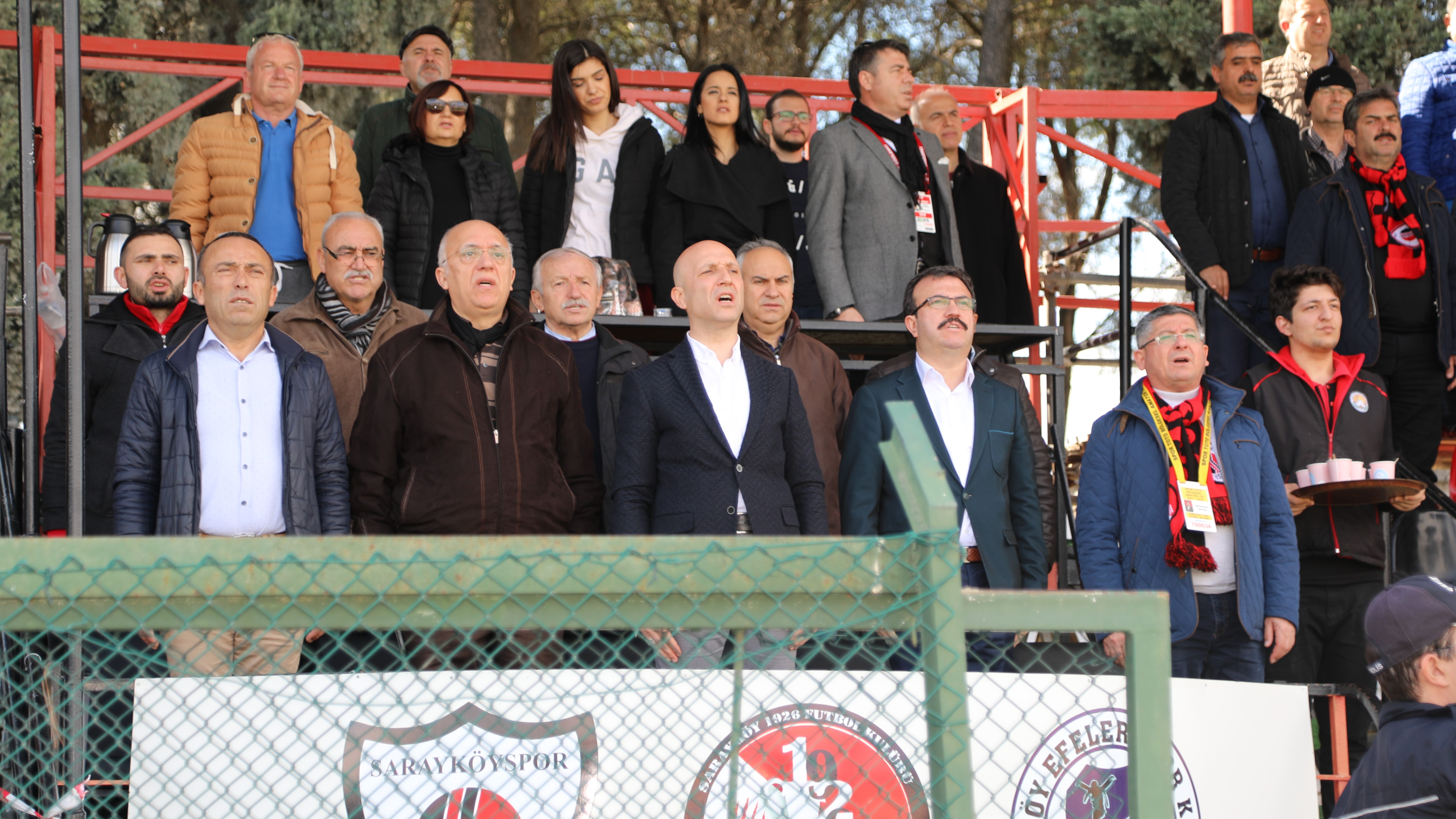 Sarayköylü yaklasık 1500 taraftarın doldurduğu tribünler görülmeye değerdi. Denizlispor tribünlerine bile bu sayıda taraftarın bulunmadığı bir dönemde, Sarayköy taraftarlarının zor dönemde takıma nasıl sahip çıkılması gerektiğini göstererek bir ders verdi adeta.