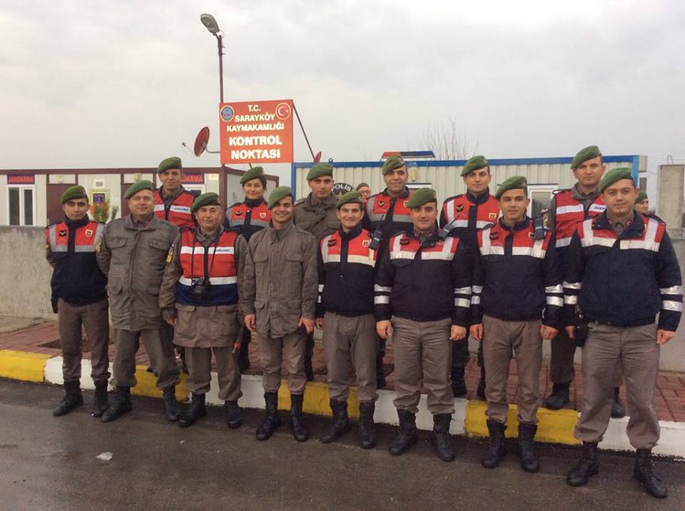 Sarayköy Jandarma Komutanlığı tarafından ilçe girişinde anayol DEPAŞ önündeki güvenlik noktasında uygulama yaptı.
