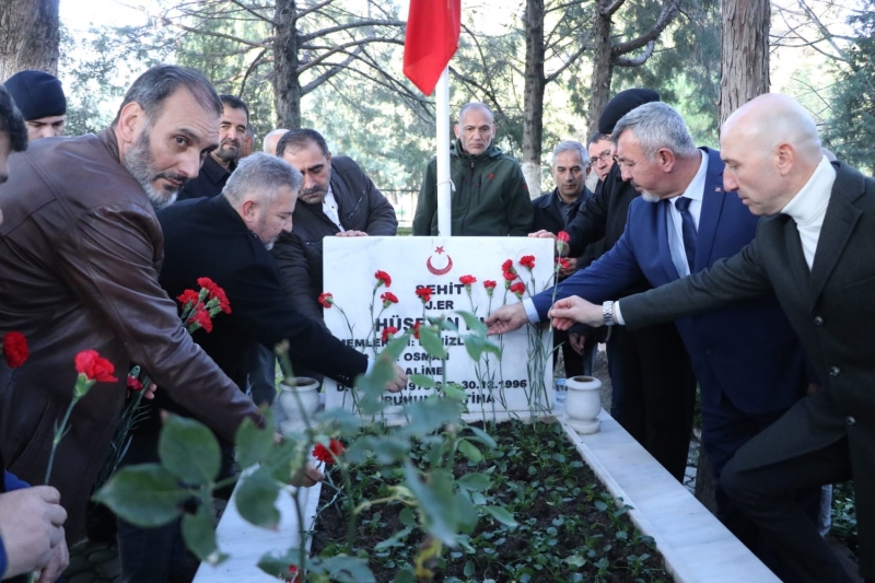 Daha sonra şehitliğe geçilerek Şehit Hüseyin Kuş’un mezarı başında dua edilip çiçek bırakıldı.