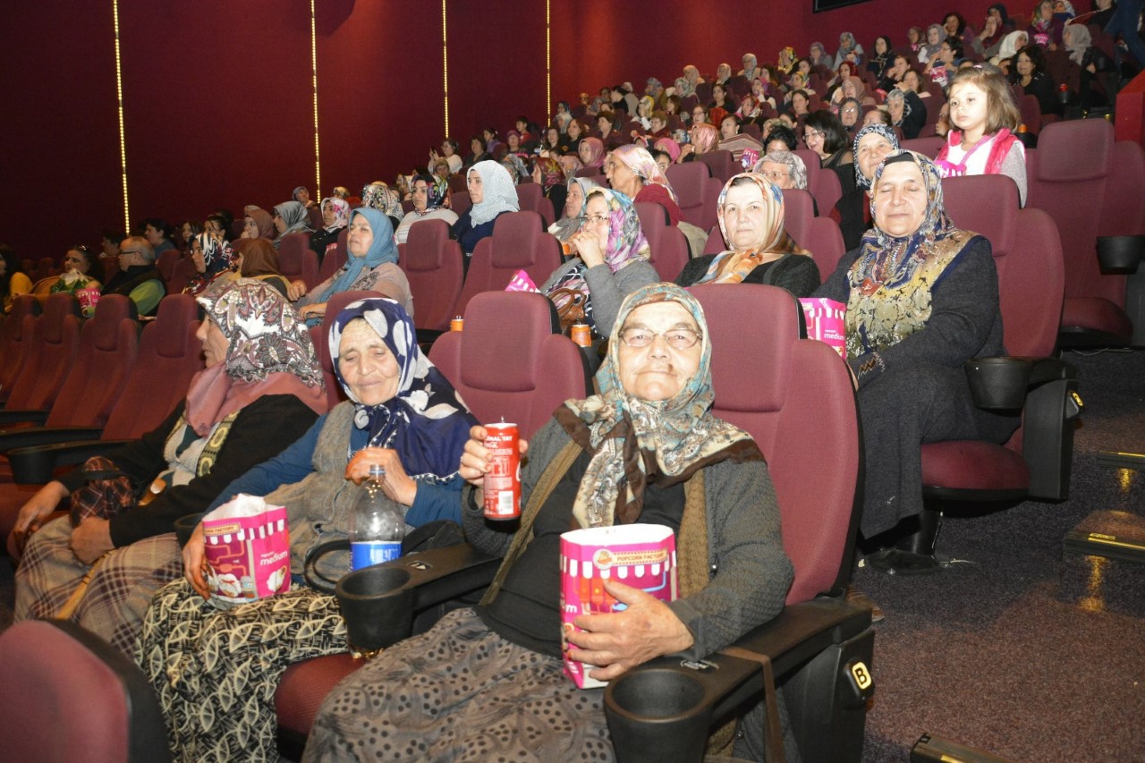 Aralarında ilk kez sinemaya gelen kadınlarında bulunduğu gruba ikramlarda bulunuldu.