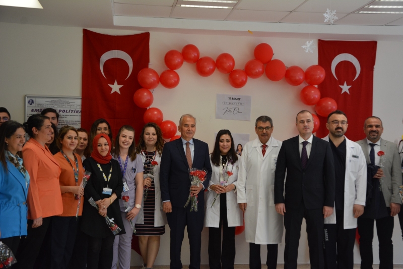 Büyükşehir Belediye Başkanı Osman Zolan, PAÜ Rektörü Prof. Dr. Ahmet Kutluhan, PAÜ Hastaneleri Başhekimi Prof. Dr. Onur Birsen, Başhekim Yardımcıları, Başmüdür Dr. Süleyman Gökmen, Hastane Müdürleri, Başhemşire Demet Ekici ve yardımcılarından oluşan heyet PAÜ Hastaneleri Çocuk Sağlığı ve Hastalıkları, Kadın Hastalıkları ve Doğum, Organ Nakli Ünitesi, Obezite Merkezi, Kemik İliği ve Transplantasyon Ünitesi, Onkoloji-Endokrinoloji, Nefroloji-Gastroenteroloji servislerini ziyaret ederek, görev yapan doktor, hemşire, sekreter ve personeli ziyaret ederek sağlık çalışanlarının 14 Mart Tıp Bayramını kutladılar.