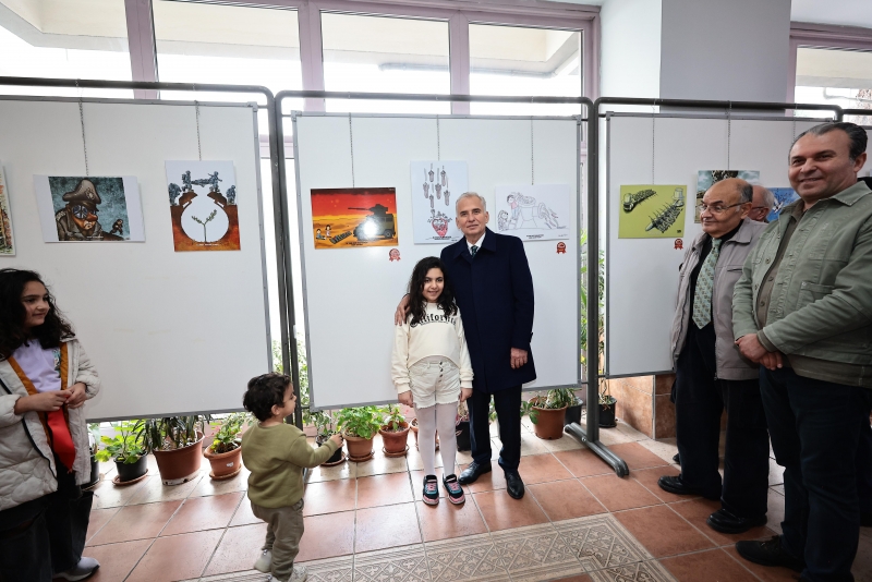 Yarışmanın temasının “Savaş ve Barış” olduğunu hatırlatan Başkan Zolan, “İnşallah savaşlar son bulsun, barışlar olsun. Bugün dünyanın dört bir tarafında çocuklar, kadınlar, yaşlılarkatlediliyor. Cani ruhlular maalesef dünyanın huzurunu bozup yaşanmaz hale getiriyorlar. İnşallah hem dünyada barış olsun hem ülkemizde huzur daim olsun. Bu sergimiz barışa katkı sağlasın inşallah” dedi. Konuşmanın ardından dereceye girenlerin ödülleri Başkan Zolan tarafından verildi. 18 yaş altı mansiyon ödülü Denizli Büyükşehir Belediyesi Genç Denizli kursiyeri, 2020 – 2021 yılları arası düzenlenen karikatür yarışmalarında dereceler alan ve geçen ekim ayında elim bir kaza sonucu yaşamını yitirenEmre Çakıl adına ithafen verildi. Ödül töreninin ardından Başkan Zolan ve beraberindekiler sergiyi gezerek eserleri inceledi.