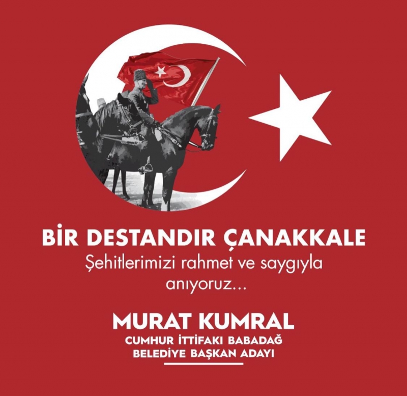 Babadağ Cumhur İttifakı Ak Parti Belediye Başkan Adayı Murat Kumral sosyal medya hesbından yaptığı paylaşımda 18 Mart Çanakkale Zaferinin 109. yıldönümünü kutladı.