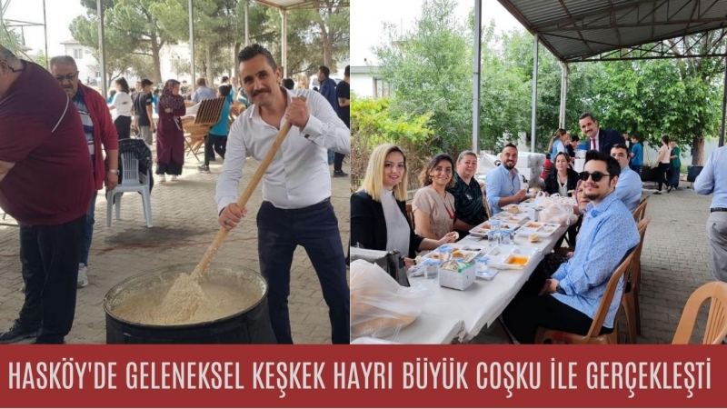 Hasköy Hayrettin Türkörmez İlkokulu ve Ortaokulu'nun Sarayköy halkıyla yaklaşık 15-20 yıldır devam eden geleneksel keşkek hayrı etkinliği bu yıl da coşkuyla gerçekleştirildi. Etkinlik, paylaşmanın ve dayanışmanın simgesi olarak bölgedeki Karakiran, Aşağı Tırkaz, Yukarı Tırkaz, Tekke, Yeşilyurt, ve Kumluca mahalleleri sakinlerinin katkılarıyla düzenlendi. Topluluk, bir araya gelerek malzemeleri birleştirdi ve 5 büyük kazanda pişirilen keşkek, 2000 kişilik bir katılımla tüm misafirlere sunuldu. Her bir katılımcı farklı bir şekilde katkıda bulundu; kimileri koyunlarını, kimileri buğdaylarını, yağlarını veya tuzlarını verdi. Pişirme süreci boyunca toplam 7 küçükbaş hayvan tüketildi ve bu, keşkeğin lezzetinin yanı sıra, katılımcıların emeğinin ve topluluk ruhunun bir göstergesi oldu. Bu etkinlik, Hasköy ve çevresindeki mahalleler arasında dayanışmayı ve kültürel gelenekleri pekiştirme açısından büyük önem taşıyor.