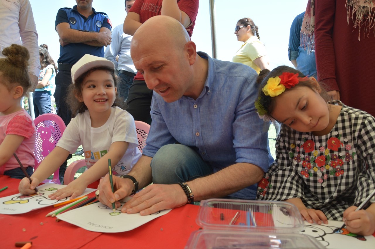 İp atlama, resim boyama, sek sek, takı yapma, yüz boyama, kör ebe, top havuzu, bugee-run, büyük kaydırak, penaltı kalesi, canlı langırt, dart, labirent, aktivite alanı ve pamuk şeker ikramının yer aldığı etkinlikte Belediye Başkanı Ahmet Necati Özbaş, çocuklarla birlikte oyun oynayarak bayramı kutladı.