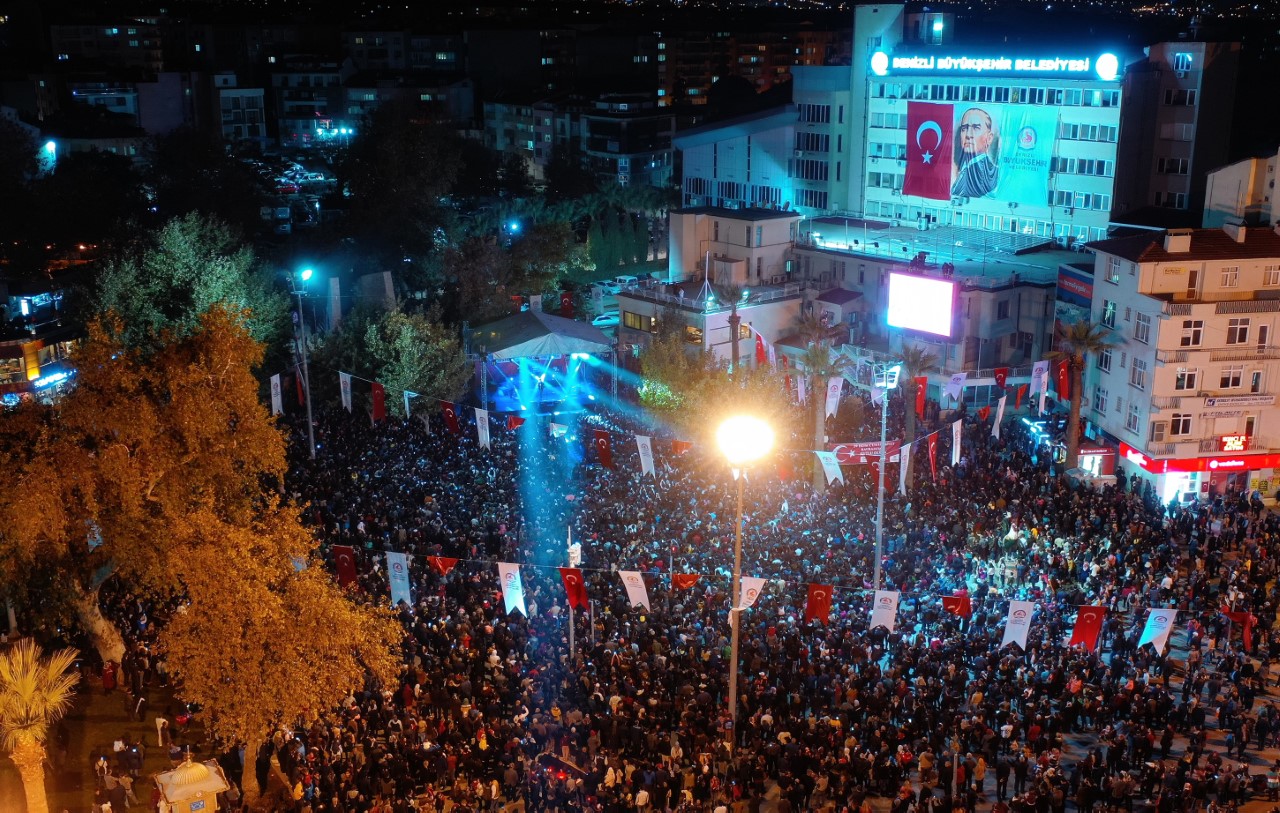 Denizli Büyük şehir Belediyesi, 29 Ekim Cumhuriyet Bayramı kutlamaları kapsamında Denizli halkını ünlü sanatçı Emre Aydın ile buluşturdu. Onbinlerin 15 Temmuz Delikliçınar Şehitler Meydanı'na akın ettiği konserde Denizlililer cumhuriyet coşkusunu doyasıya yaşadı. Denizli Büyük şehir Belediyesi, 29 Ekim Cumhuriyet Bayramı kutlamaları kapsamında Emre Aydın konseri düzenledi. 15 Temmuz Delikliçınar Şehitler Meydanı'nda düzenlenen konser alanını saatler öncesinden dolduran Denizlililer konsere yoğun ilgi gösterdi. Onbinlerin akın ettiği konserde sahne alan Emre Aydın birbirinden güzel şarkılarını Denizlililer için söyledi. Vatandaşların yoğun sevgi gösterisi altında şarkılarını hep bir ağızdan söyleyen Emre Aydın, böylesi özel bir günde kendisini Denizlililerle buluşturan Denizli Büyükşehir Belediye Başkanı Osman Zolan’a teşekkür etti. Sanatçı Aydın'a Denizli horozu figürü bulunan plaket veren Denizli Büyük şehir Belediye Başkanı Osman Zolan, Denizli halkının Cumhuriyet Bayramı'nı kutladı. "Hep beraber sahip çıkacağız" Başkan Osman Zolan, "95 yıl önce bugün cumhuriyetimiz ilan edildi. O güne gelinceye kadar ecdadımız canını ve kanını bu toprağa verdi. İşte o mücadele sonucunda zafere ulaştık. Başta cumhuriyetimizin kurucusu Gazi Mustafa Kemal Atatürk olmak üzere, tüm şehitlerimizi, kahramanlarımızı ve gazilerimizi şükran, rahmet ve minnetle anıyoruz" dedi. "Cumhuriyetimize, vatanımıza, bayrağımıza, devletimize hep beraber sahip çıkacağız" diyen Başkan Osman Zolan, şöyle konuştu: "Cumhuriyetimizin yüzün yılı 2023’te muasır medeniyet seviyesinin üzerine hep beraber kavuşacağız. Yarınımız bugünden daha güzel olsun. Birlik ve beraberliğimiz daim olsun. Cumhuriyetimiz yaşasın, 95. yılımız kutlu olsun. Sizlerin bu inancı, sadakati olduğu sürece şehitlerimiz ölmez, vatanımız bölünmez."![]()