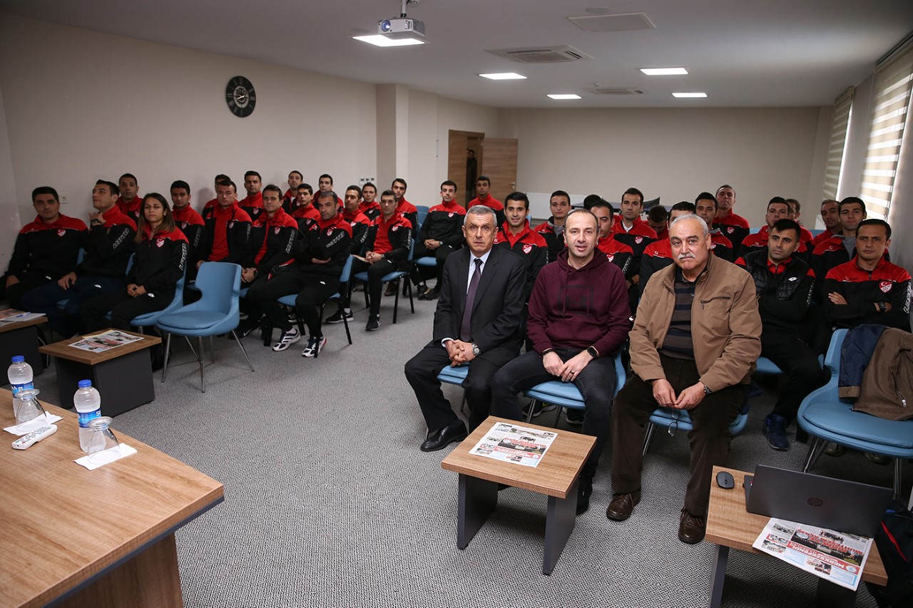 Merkezefendi Belediyesi tarafından ilçeye kazandırılan Selçukbey Spor Eğitim Merkezi, Türkiye Futbol Federasyonu (TFF) Merkez Hakem Kurulu (MHK) tarafından düzenlenen eğitim seminerine ev sahipliği yaptı. Süper Lig hakemleri Barış Şimşek ve Ümit Öztürk’ün katıldığı seminerde 8 ilden hakemler yer aldı. Sporun ve sporcunun dostu Merkezefendi Belediyesi’nin Selçukbey Mahallesi’ne kazandırdığı Spor Eğitim Merkezi, önemli spor organizasyonlarına ev sahipliği yapmaya devam ediyor. Bu çerçevede Türkiye Futbol Federasyonu (TFF) Merkez Hakem Kurulu (MHK) tarafından düzenlenen eğitim semineri, Selçukbey Spor Eğitim Merkezi’nde gerçekleştirildi. Seminere İl Hakem Kurulu Başkanı Hayati Ünal, Futbol İl Temsilcisi Musa Coşkun, Süper Lig hakemleri Barış Şimşek, Ümit Öztürk, Osman Gökhan Bilir, 8 ilin bulunduğu Akdeniz ve Ege Bölgesi Klasman Hakemleri ile Bölgesel Amatör Lig hakemleri katıldı. Hakem Barış Şimşek’in sunumuyla videolu olarak gerçekleştirilen seminerde oyun kuralları ve dikkat edilmesi gereken noktalar anlatıldı. Hakemler bir süre istişarelerde bulundu.