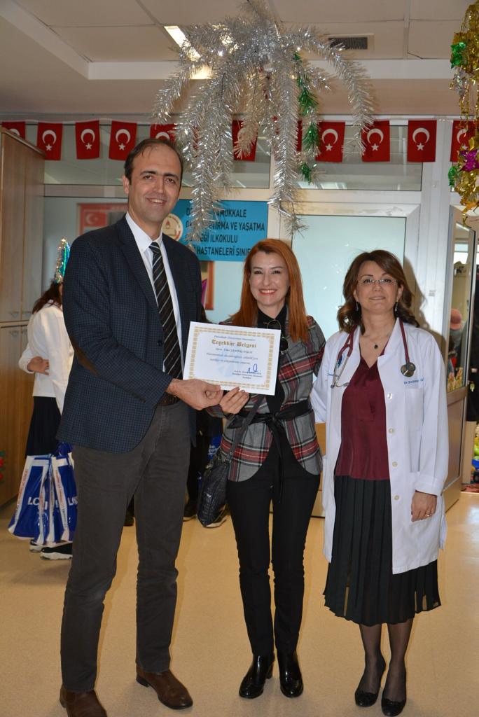 Ortaokul Müdür Yardımcısı Emel Samanlıoğlu ve öğrencilerin katılımıyla gerçekleşen etkinliğe PAÜ Hastanesi Başhekimi Prof. Dr. İbrahim Türkçüer, Çocuk Sağlığı e Hastalıkları ABD Başkanı Prof. Dr. Dolunay Gürses ve veliler katıldı. Etkinlik hakkında bilgi veren Samanlıoğlu “ ODTÜ Geliştirme Vakfı Özel Denizli Okulu olarak 2017-2018 Eğitim Öğretim yılının son sosyal projesi ile; okulumuz 7. Sınıf öğrencisi Onur Coşkun’un okul yönetimine sunduğu “Sevgimi Paylaşıyorum, Çoğalıyorum” projesi kapsamında, kliniğiniz bünyesinde yataklı serviste bulunan çocuk hastalara moral olması açısından etkinlik yapmaktan çok mutluyuz dedi. ODTÜ Geliştirme Vakfı Özel Denizli Okulu 7. Sınıf öğrencileri (Onur Coşkun, Ceren Gürses, Ayberk Merpez, Yağmur Varma, Azra Ece Özcan, Melek Girişgen) ile Emre Coşkun’un verdiği hediyeler çocuklarımıza moral oldu. Başhekim Prof. Dr. İbrahim Türkçüer ise, bu tür etkinliklerin yatan çocuk hastalarımıza çok iyi geldiğini belirterek emeği geçen herkese teşekkür belgelerini takdim etti.