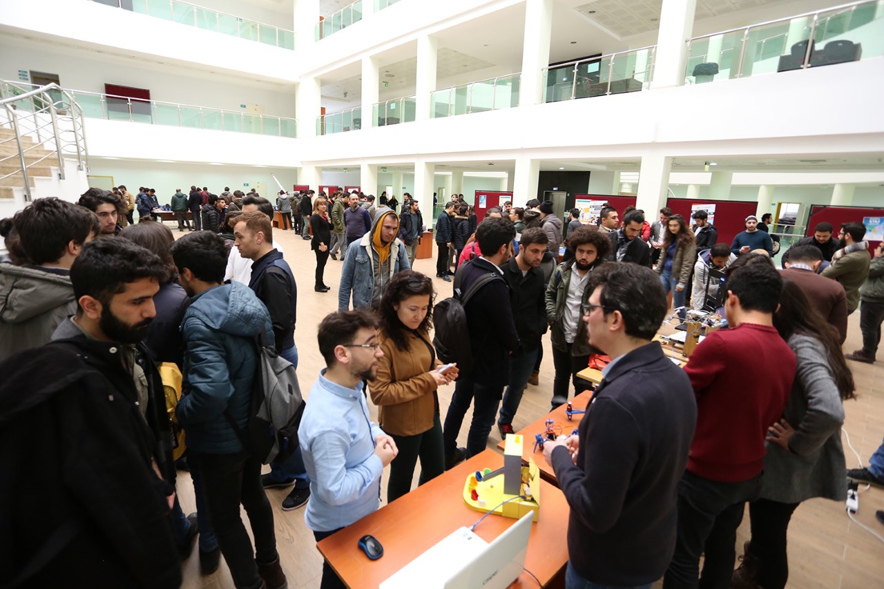 Teknoloji Fakültesi Fuaye Alanı’nda düzenlenen ve aralarında; bilgisayar kontrollü kesim cihazları, otomatik soğutma makinaları, 3D yazıcı ve robot kolların da yer aldığı sergide yaklaşık 25 proje yer aldı.