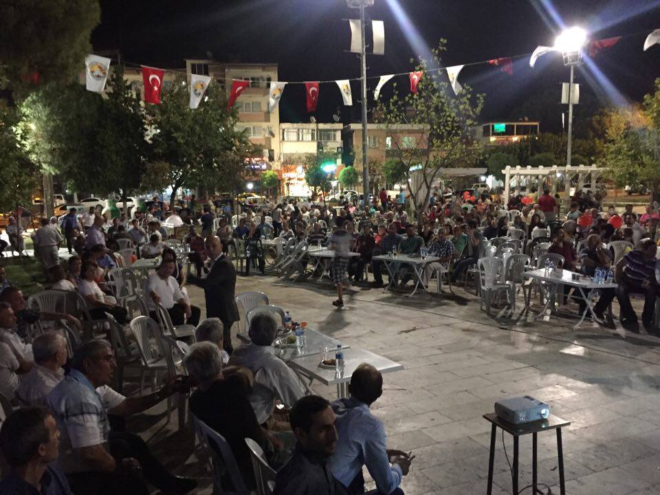 Geçtiğimiz cuma akşamı siyasi iradeye ve demokrasiye neşter vurup, darbe yapmak isteyen cuntacı gruba halk meydanlara çıkarak, tankların önüne geçerek dur demişti. Toplam 201 sivil, polis ve asker şehit olmuş, binlerce insan yaralanmıştı. Cumhurbaşkanımız Başkomutan Recep Tayyip Erdoğan halkı meydanlara çıkma çağrısında bulunmuş ve bu hafta boyu meydanlarda demokrasiye sahip çıkmaya davet etmişti. Tüm yurtta olduğu gibi Sarayköy'de de halk meydana çıkıp Efe Meydanını doldurmuştu. Efe Meydanındaki demokrasi nöbetinin 6. gününde halk yine meydanı tıklım tıklım doldurdu.
