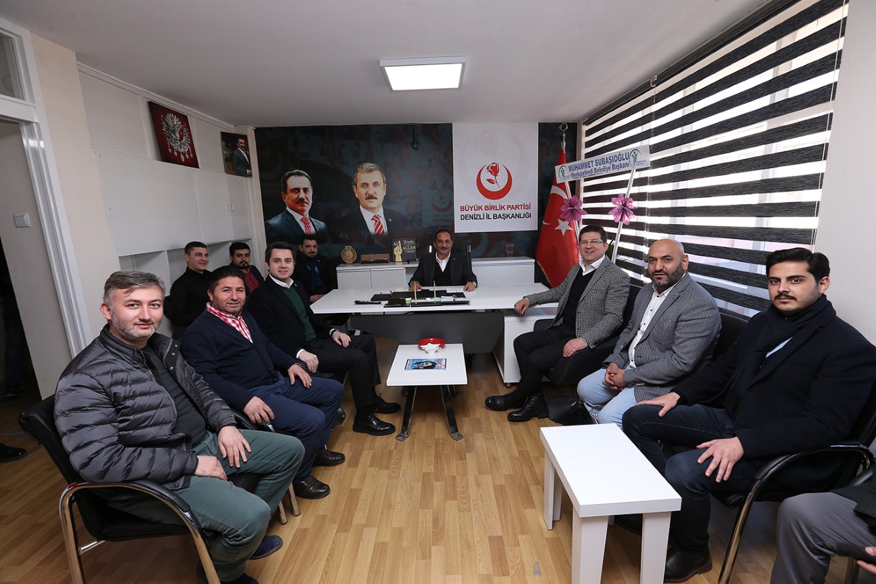 Büyük Birlik Partisi İl Başkanı İlhami Çiçek ve Büyük Birlik Partisi Merkezefendi İlçe Başkanı Aytekin Abaş'la bir süre sohbet eden Subaşıoğlu ve beraberindeki heyet, ülke gündemi ve yaklaşan yerel seçimlere ilişkin istişarelerde bulundu. Merkezefendi Belediye Başkanı Muhammet Subaşıoğlu, Büyük Birlik Partisi’nin Türk siyasetinin dönüm noktalarında sergilediği milli irade ve demokrasiden yana duruşlarıyla müstesna bir yere sahip olduğunu belirterek, “Rahmetli Muhsin Yazıcıoğlu’nun ‘Namlusunu halka çevirmiş tanka selam durmam’ vecizesi, kendisinden sonra da partisinin rotası olmuştur. Her dönem demokrasi ve milli iradeden yana tavizsiz bir tavır sergileyen Büyük Birlik Partisi’nin duruşu takdire şayandır. Bugün burada, bu mümtaz siyasi hareketin temsilcileri olan Büyük Birlik Partili kardeşlerimle bir arada olmaktan büyük onur ve mutluluk duyuyorum. İl Başkanı Sayın İlhami Çiçek ile Merkezefendi İlçe Başkanı Sayın Aytekin Abaş beyefendiye misafirperverlikleri ve nezaketleri için teşekkür ediyorum” dedi.