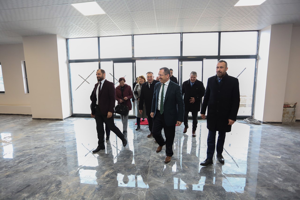 Tamamlanan derslikler ve kantin hakkında bilgi alan Rektör Hüseyin Bağ, Başkan Mehmet Kobaş ve beraberindeki heyetle istişarelerde bulundu. Çevre düzenlemesi hakkında da bilgi alan Bağ, çalışmalarla ilgili memnuniyetlerini iletti.