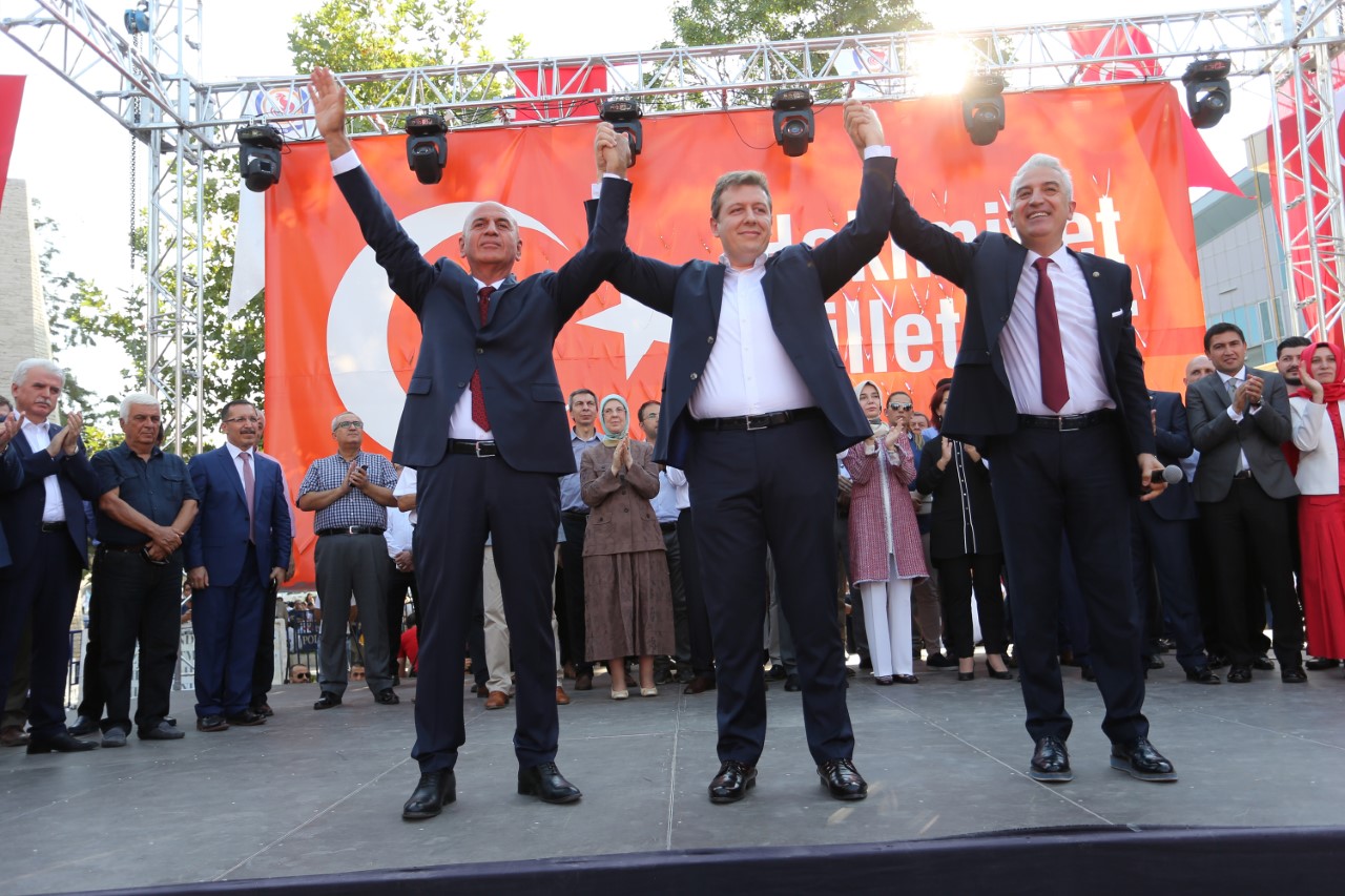 Milletvekili Cahit Özkan, “24 günden beri milli irademizin ve demokrasimizin nöbetini tutuyoruz. Milli irade ve demokrasi şölenimiz kutlu olsun. Siz milli iradeye sahip çıkarken biz Türkiye’yiz diyorsunuz. Siz bu alanlarda bu meydanlarda çizdiğiniz rota ve yol bize ışık olacaktır” diye konuştu.
