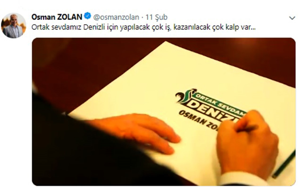 Denizli Büyükşehir Belediye Başkanı ve Büyükşehir Belediye Başkan Adayı Osman Zolan'ın "Ortak sevdamız Denizli" adlı tanıtım filmi büyük ses getirdi. Sadece sosyal medyadan 150 binden fazla kişiye ulaşan filme yapılan yorumlarda vatandaşların ortak mesajı, "Denizlinin daha güzel yarınları için her zaman yanınızdayız" oldu.
