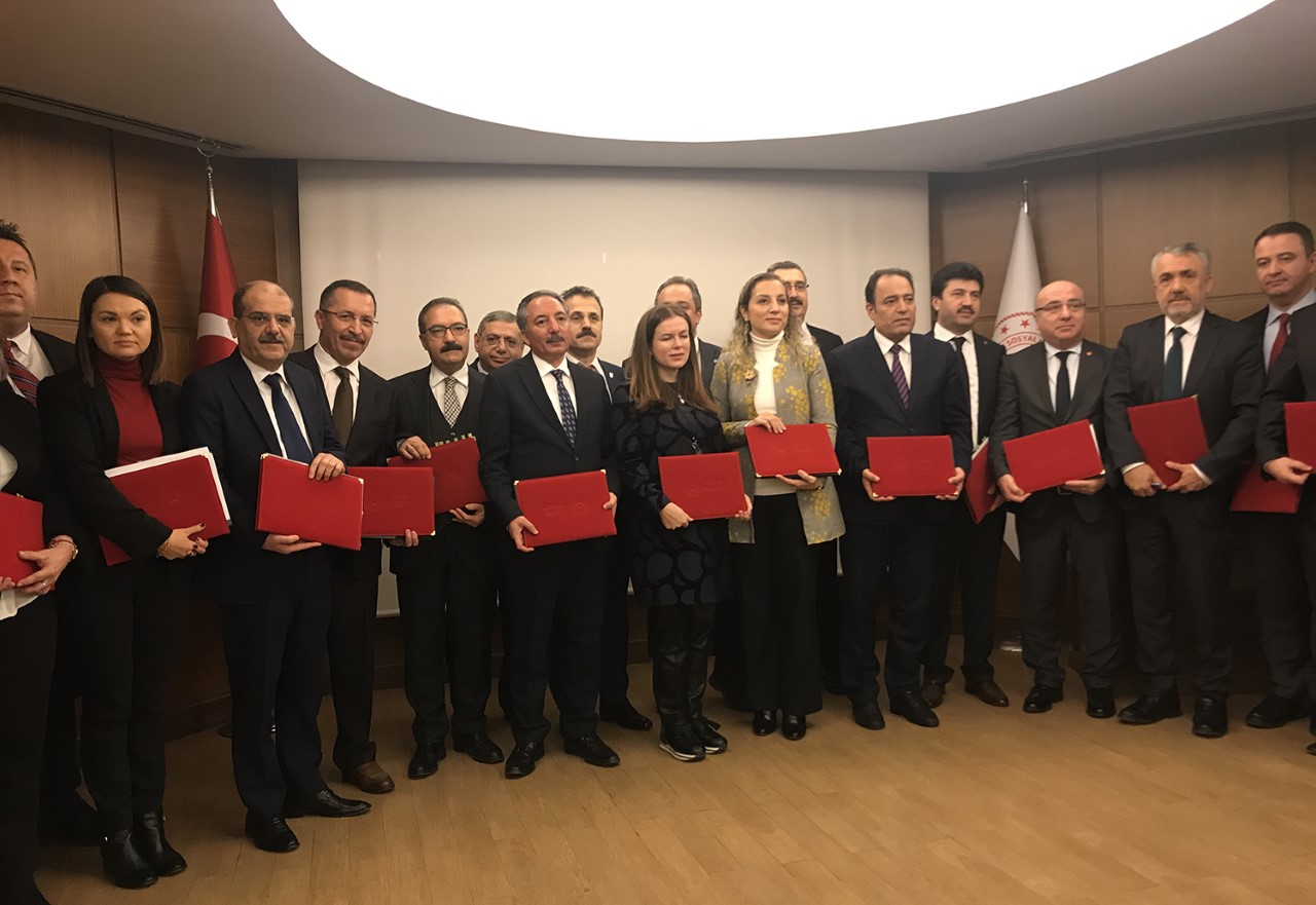 Ankara’da Aile, Çalışma ve Sosyal Hizmetler Bakanlığı’ndaki Reşat Moralı Toplantı Salonu’nda düzenlenen imza törenine Aile, Çalışma ve Sosyal Hizmetler Bakanlığı İş Sağlığı ve Güvenliği Genel Müdürü Sedat Yenidünya ile bakanlık yetkilileri ve 21 üniversitenin rektörü katıldı.