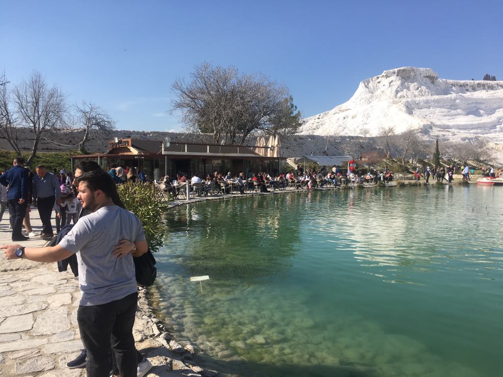Güneşin sıcaklığını hissettirdiği şu günlerde pazar gününü değerlendirmenin en iyi yolu tarihi ve muhteşem manzarasıyla Pamukkale'ye gitmek olduğunu düşünen vatandaşlar, aileleri ve sevdikleriyle keyifli bir gün geçirdi. Dün ayrı bir güzel olan Pamukkale'yi çocuk sesleri sardı. Anne babalar ise eşşsiz manzara karşısında çaylarını yudumladı. Sezonun açılmamasına rağmen turistlerde Pamukkale'ye gelmişti. Travertenlerin üstünde yamaç paraşütü yapanlar ziyaretçilere ayrı  bir görsellik sundu.