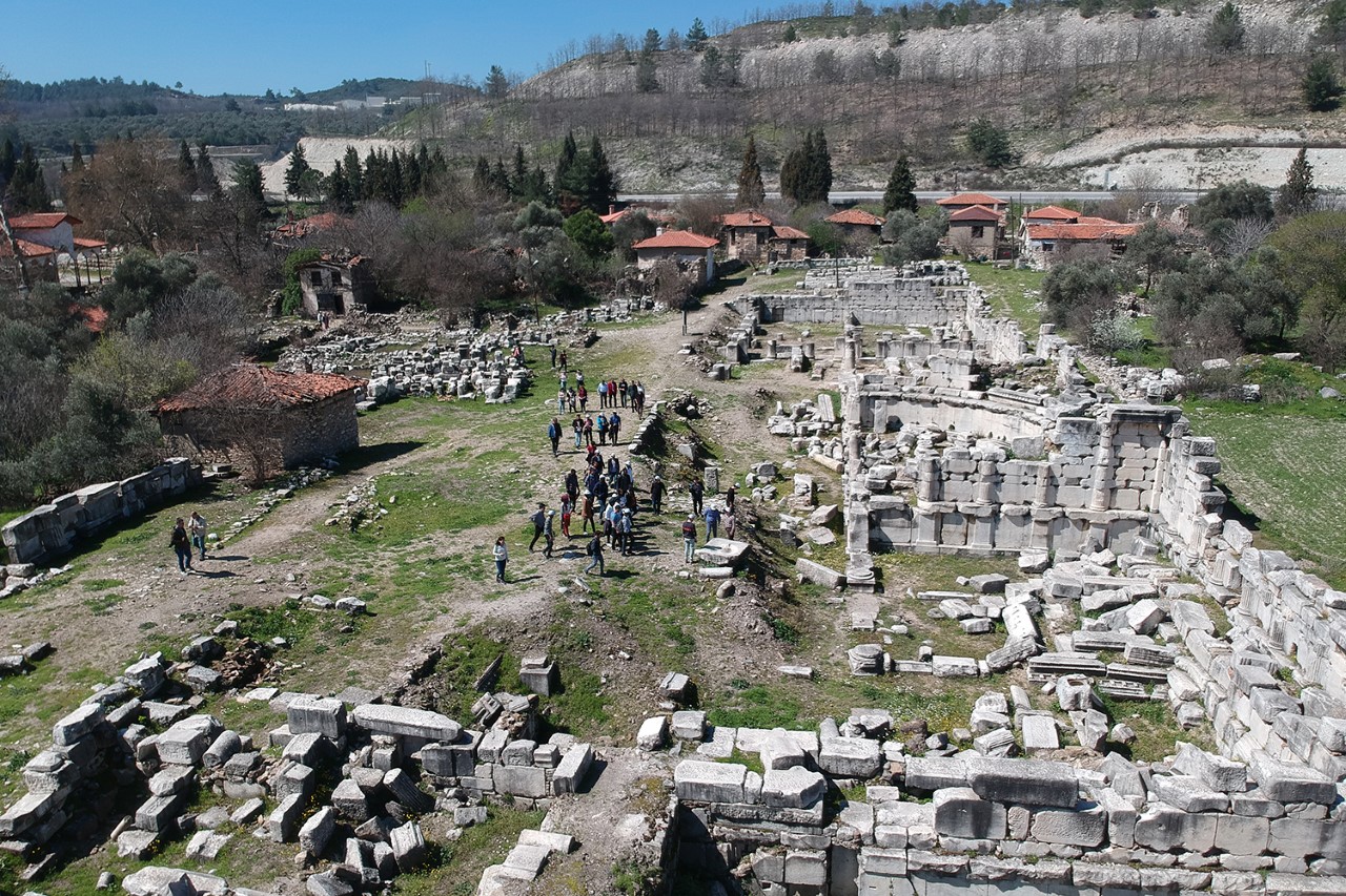 Stratonikeia antik kentini yabancı öğrencilere anlatan kazı başkanı Prof. Dr. Bilal Söğüt, kentte yapılan kazı, restorasyon ve konservasyon çalışmaları hakkında Rektör Prof. Dr.Hüseyin Bağ’a bilgi verdi.