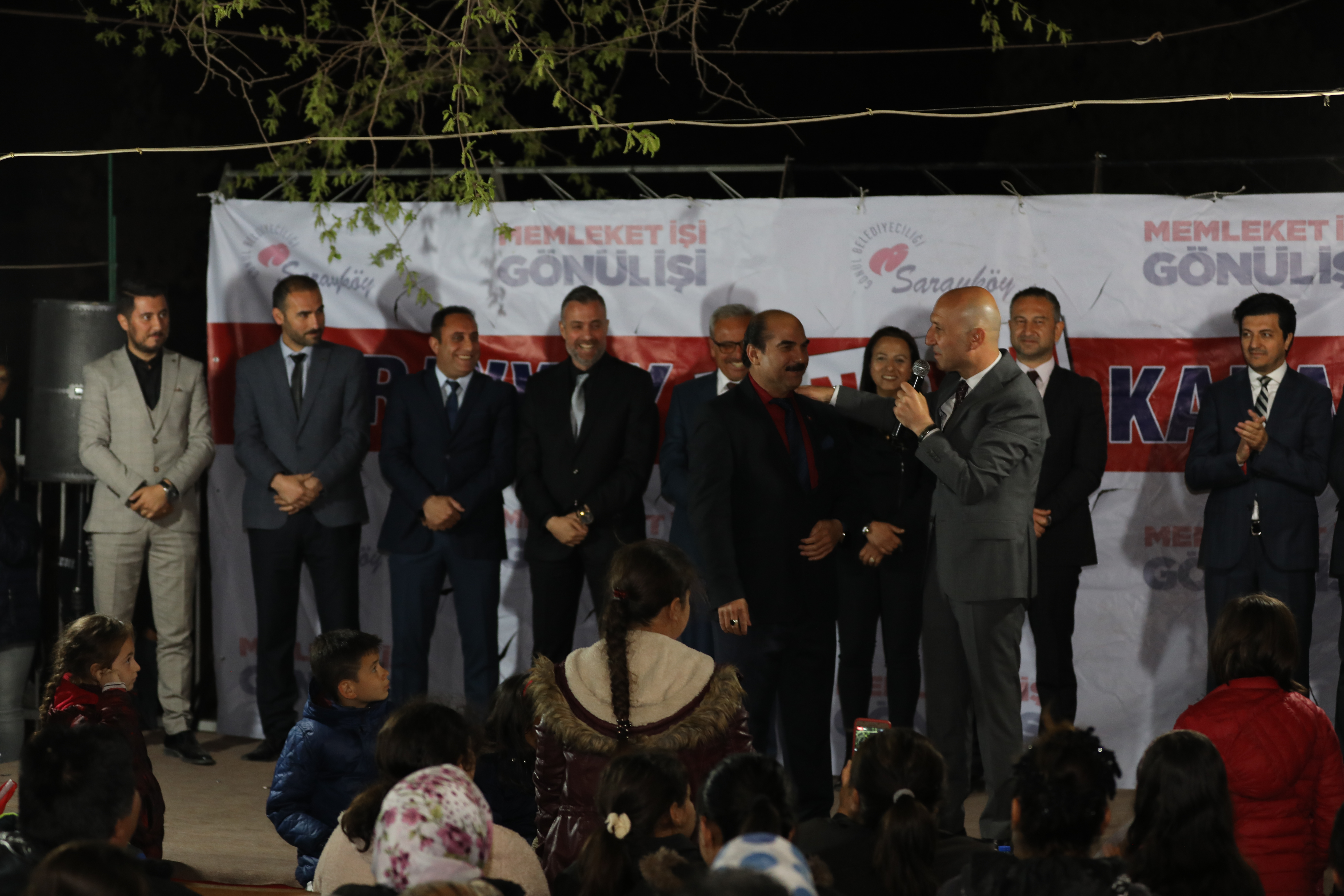 Dün akşam İstasyon Mahallesi’nde Sarayköy Sevdalıları ile buluşan Sarayköy Belediye Başkanı Ahmet Necati Özbaş’ı konuşma sırasında ceketinden küçük bir el asıldı. Küçük kız elindeki su şisesini Özbaş’a verdi.
