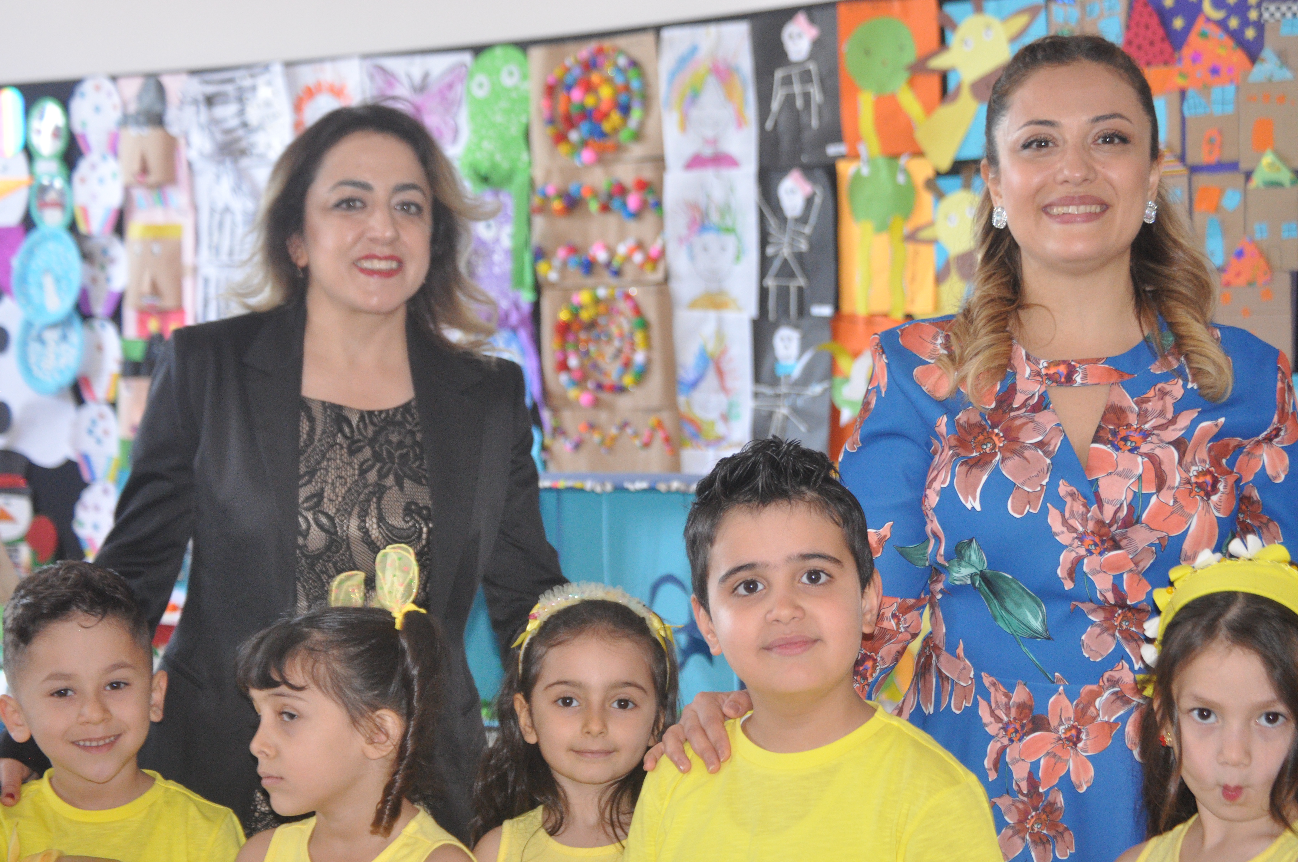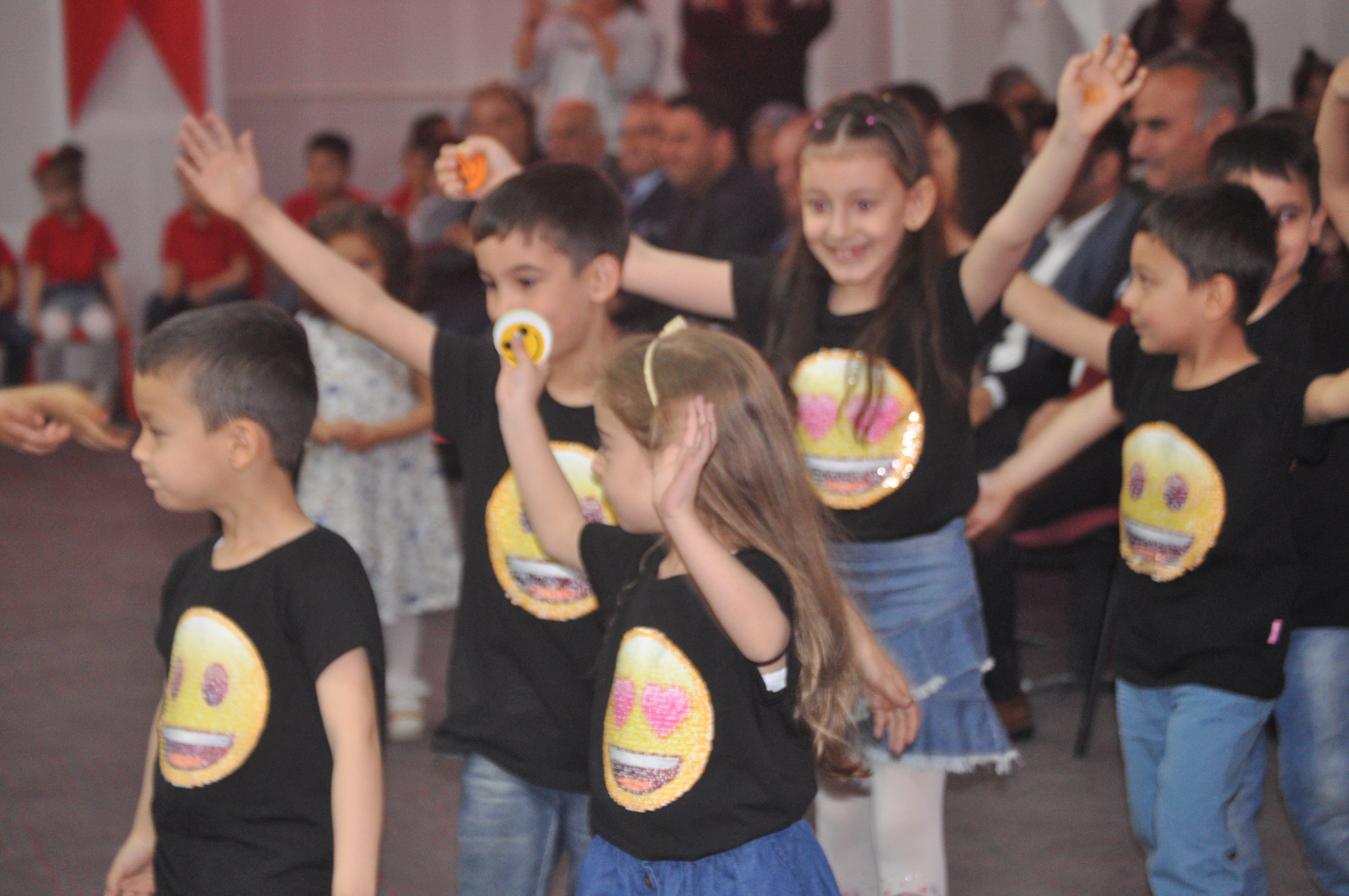 Öğrenciler bahar çiçekleri gibi renkli kıyafetleriyle gösterilerini sergilediler. Anne babaların da en az çocukları kadar heyecanlı olduğu görünüyordu.