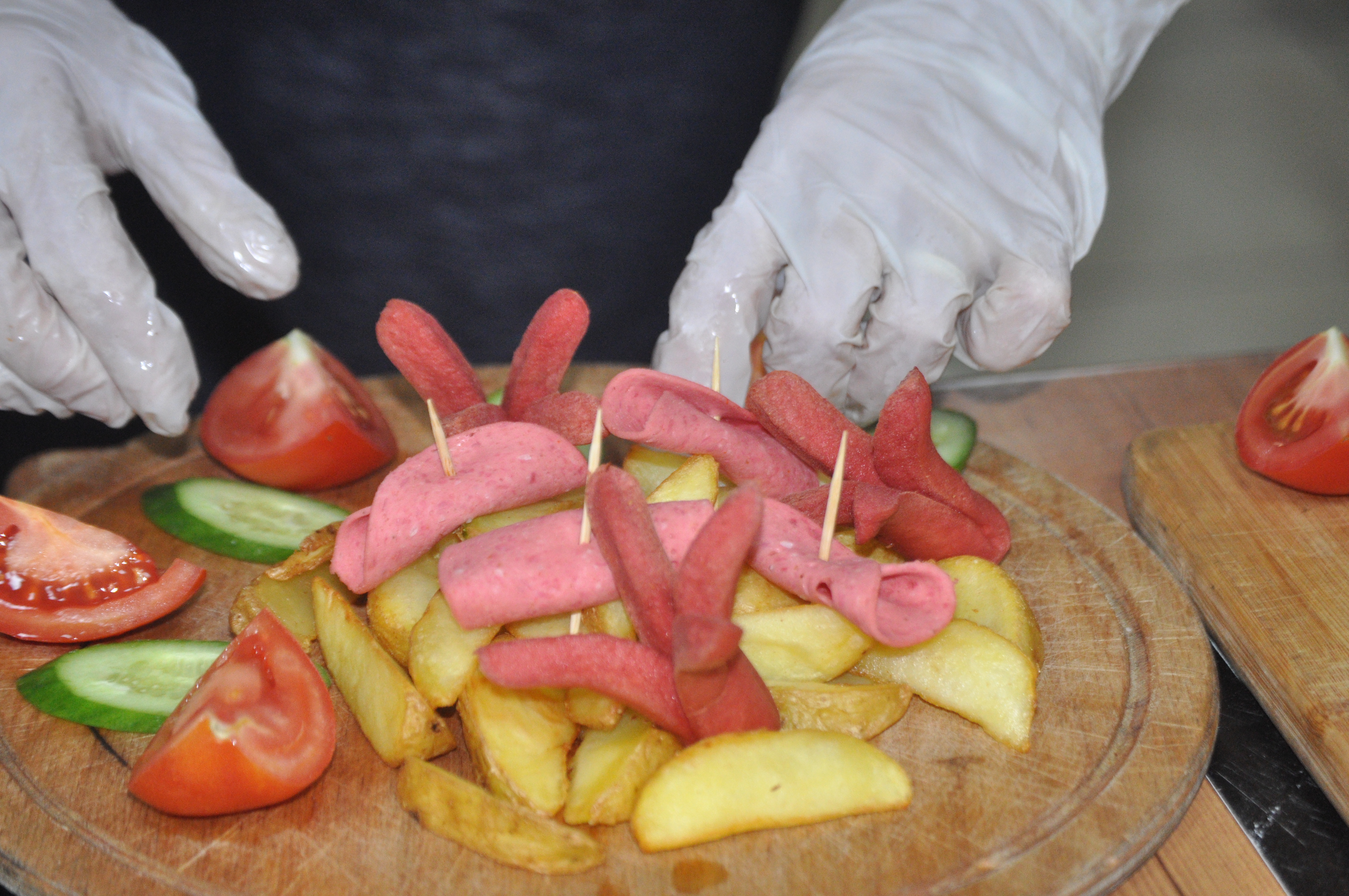 Çocukların ve hatta büyüklerin vazgeçilmezi patates kızartması ve sosisler misafirlerin gelmesine yakın hazırlandı. Sıcak bir şekilde servis edildi.