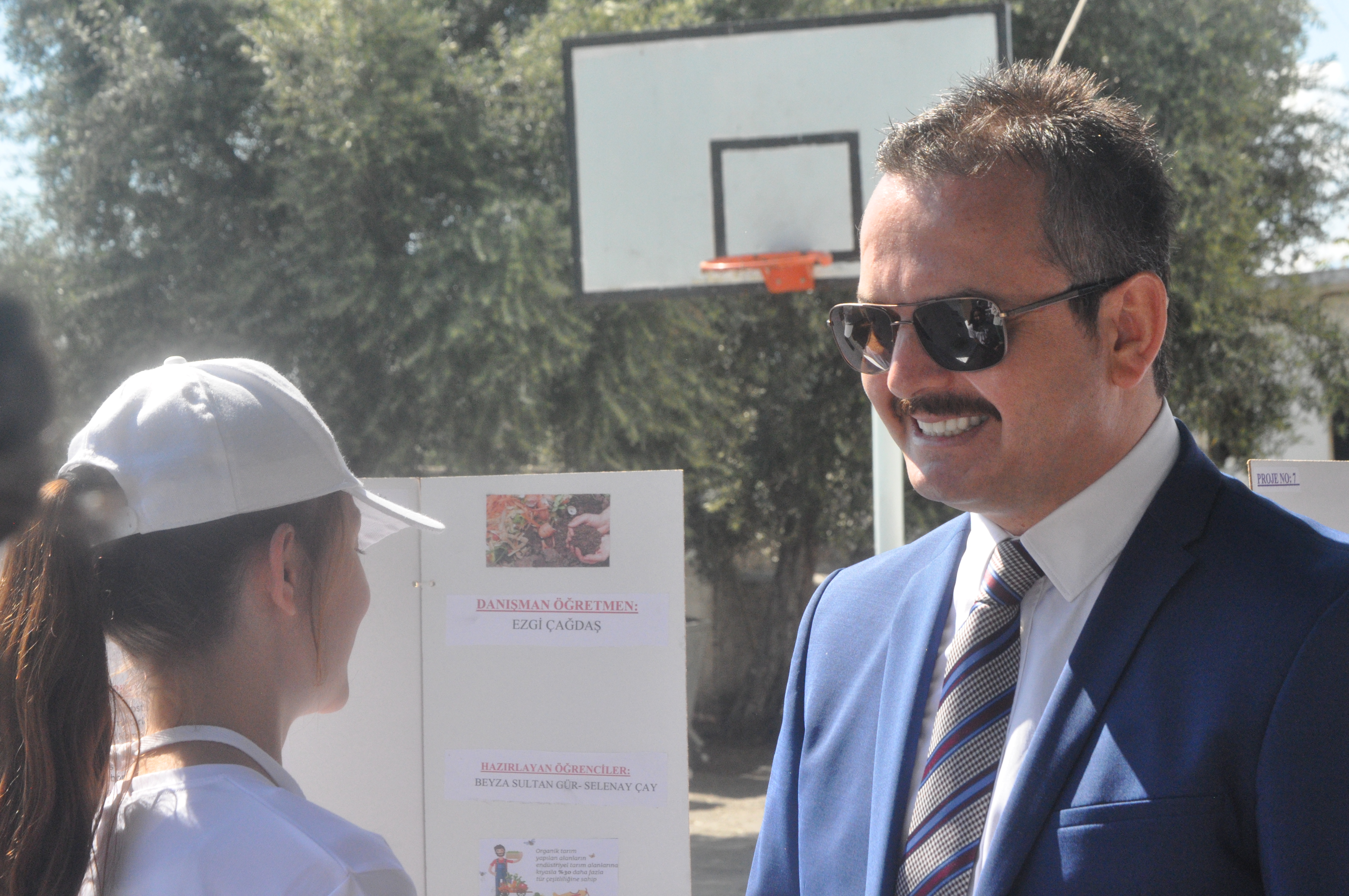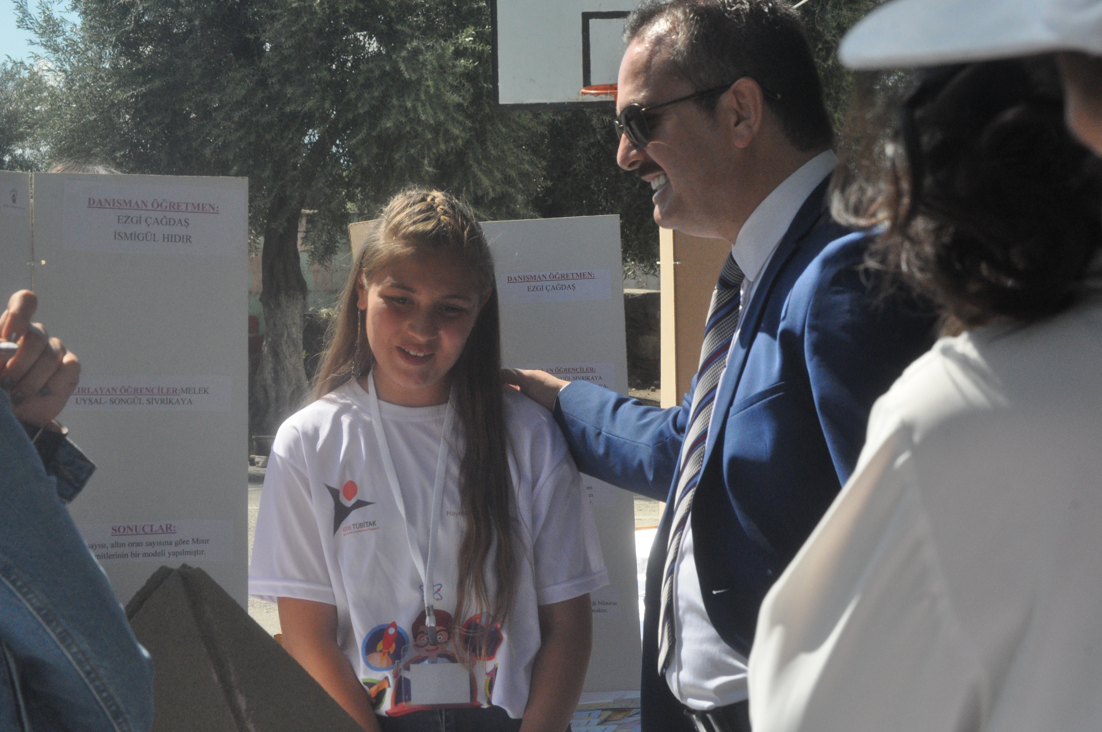 İlçe Kaymakamı Fatih Akkaya, projeleri tek tek inceleyip düşüncelerini öğrencilerle paylaştı. Projenin daha ileriye taşınabilmesi adına öğrencilere fikirler verdi.