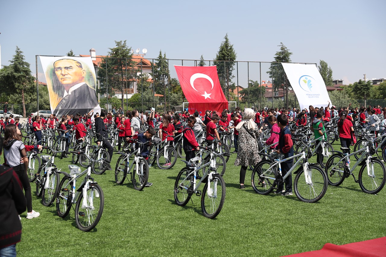 Merkezefendi Belediye Başkanı Şeniz Doğan’ın konuşmasının ardından bisikletler çocuklara hediye edildi. Veliler, Başkan Doğan’a teşekkür etti.