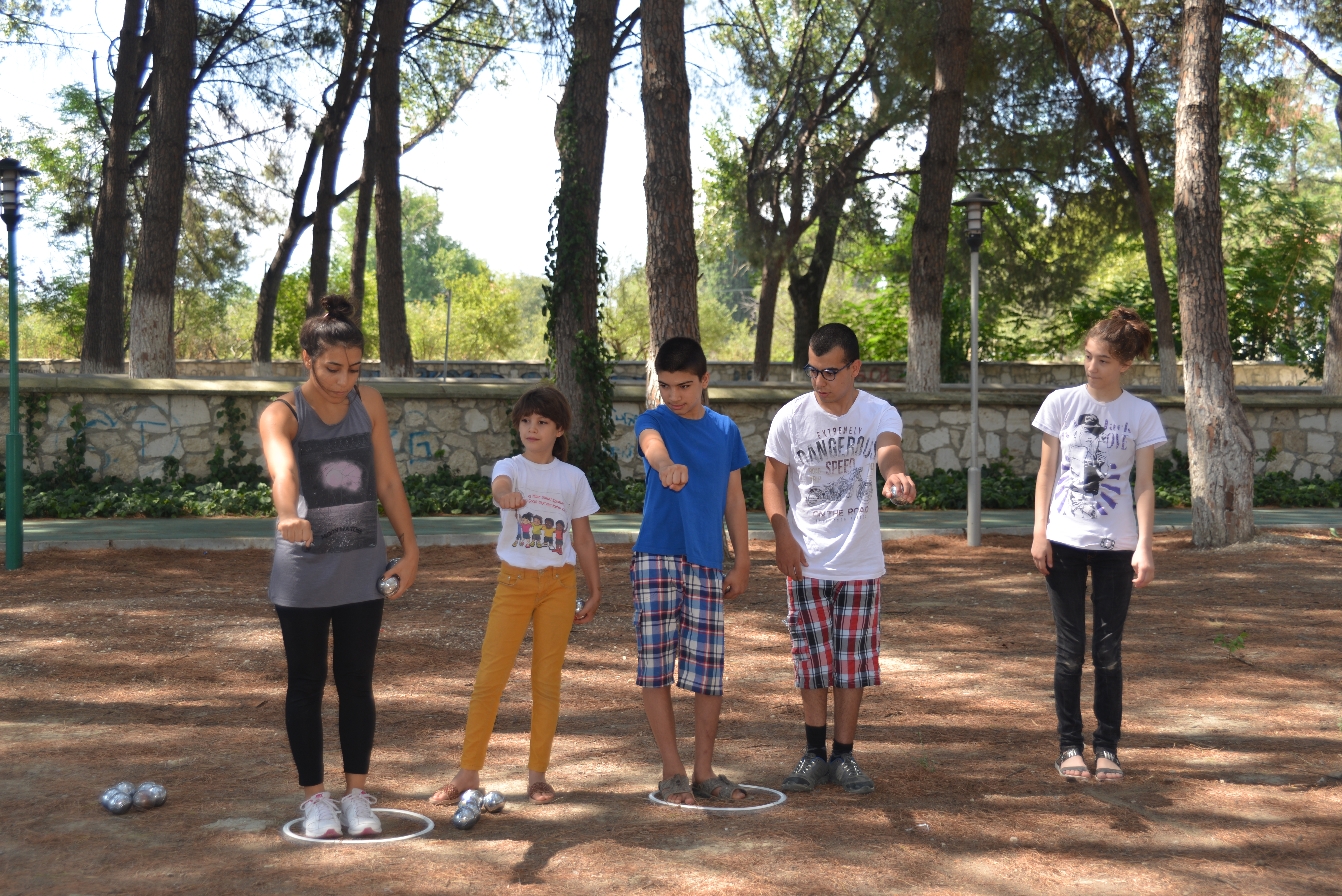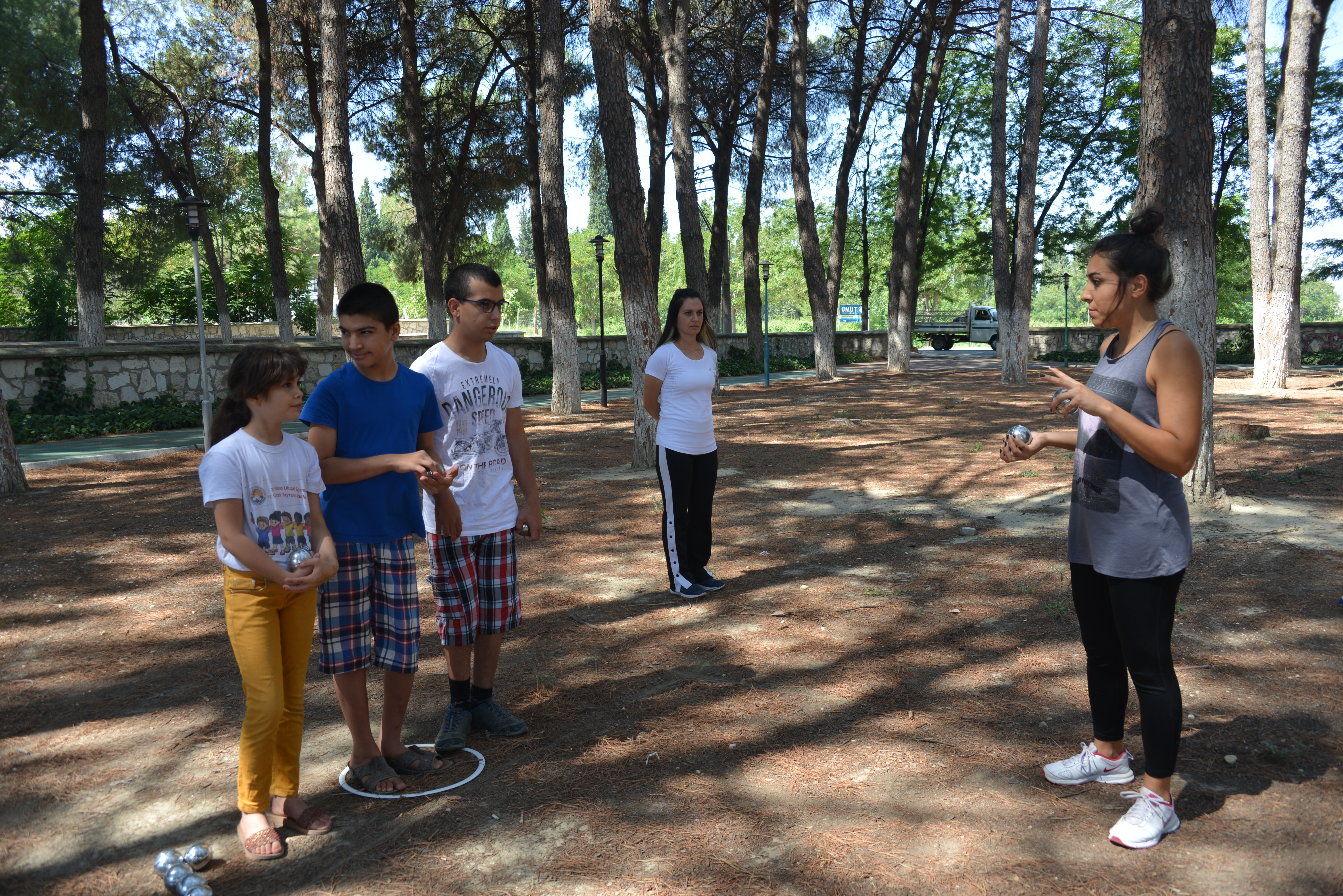 Öğrenciler, bu sabah Havuz yolundaki yürüyüş kortunda Gençlik Spor İlçe Müdürlüğü antrenörleriyle birlikte ‘bocce’ oynadılar.