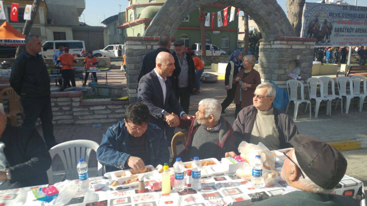 Deveciliğin Sarayköy’deki merkezi olarak kabul edilen Aşağı Mahalle’de düzenlenen hayra Sarayköy Kaymakamı Fatih Akkaya, Sarayköy Belediye Başkanı Ahmet Necati Özbaş, deveciler ve çok sayıda vatandaş katıldı. Yoğun katılımın olduğu hayırda, öğle namazı sonrasında hem Sarayköy’ün hem de ülkemizin rahmet ve berekete kavuşması için İlçe Müftüsü Ahmet Dilek tarafından yağmur duası yaptırıldı.