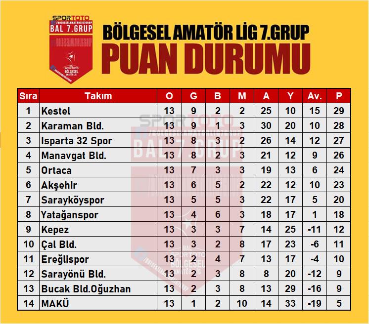 SPOR Toto Bölgesel Amatör Futbol Lig (BAL) 7. Grup’ta bugün oynanan karşılaşmalar ile ilk yarı tamamlandı. Ligde ikinci yarı heyecanı ise 19 Ocak 2020 tarihinde yapılacak maçlarla başlayacak. Denizli’yi Bal Lig’inde temsil eden Sarayköyspor, Konya temsilcilerinden Sarayönü Belediyespor ile Ali Tuncer yönetiminde kendi evinde karşılaştı. Gol yağmuru altında gerçekleşen karşılaşmada gülen taraf Sarayköyspor oldu. Sahada baskın bir futbol sergileyen Sarayköyspor emeğinin karşılığını ağlarla buluşturduğu üç gol ile aldı. Oynadığı son üç maçta galibiyet yüzü göremeyen Sarayköyspor, bu maçta üç maçın acısını attığı üç gol ile çıkardı. İlk yarıyı 2 gol ile tamamlayan ev sahibi takım Sarayköyspor, üçüncü golü ise ikinci yarıda buldu. Konuk takım Sarayönü Belediyespor ise ikinci yarının başlamasının ardından kaydettiği bir gol ile maçı tamamladı. Sarayönüspor, Denizli deplasmanında Sarayköyspor’a 3-1 mağlup olarak kötü serisine devam etti. Yeşil-siyahlılar ilk yarıyı ise 9 puanla düşme hattında kapattı. Sarayköyspor ilk yarıda yerini koruyarak 7. Sırada ilk yarıyı tamamladı.