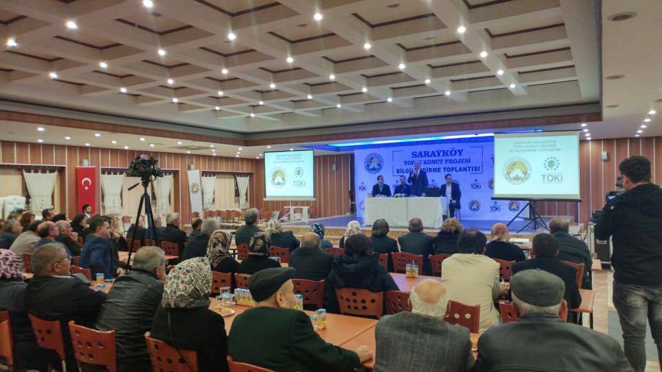 Sarayköy Belediye Başkanı Ahmet Necati Özbaş ve TOKİ uzmanlarının katıldığı toplantıya ev sahibi olmak isteyen Sarayköylü vatandaşlar yoğun ilgi gösterirken, vatandaşlar toplu konut projesi ile ilgili merak ettikleri tüm soruları sorarak bilgiler aldılar.