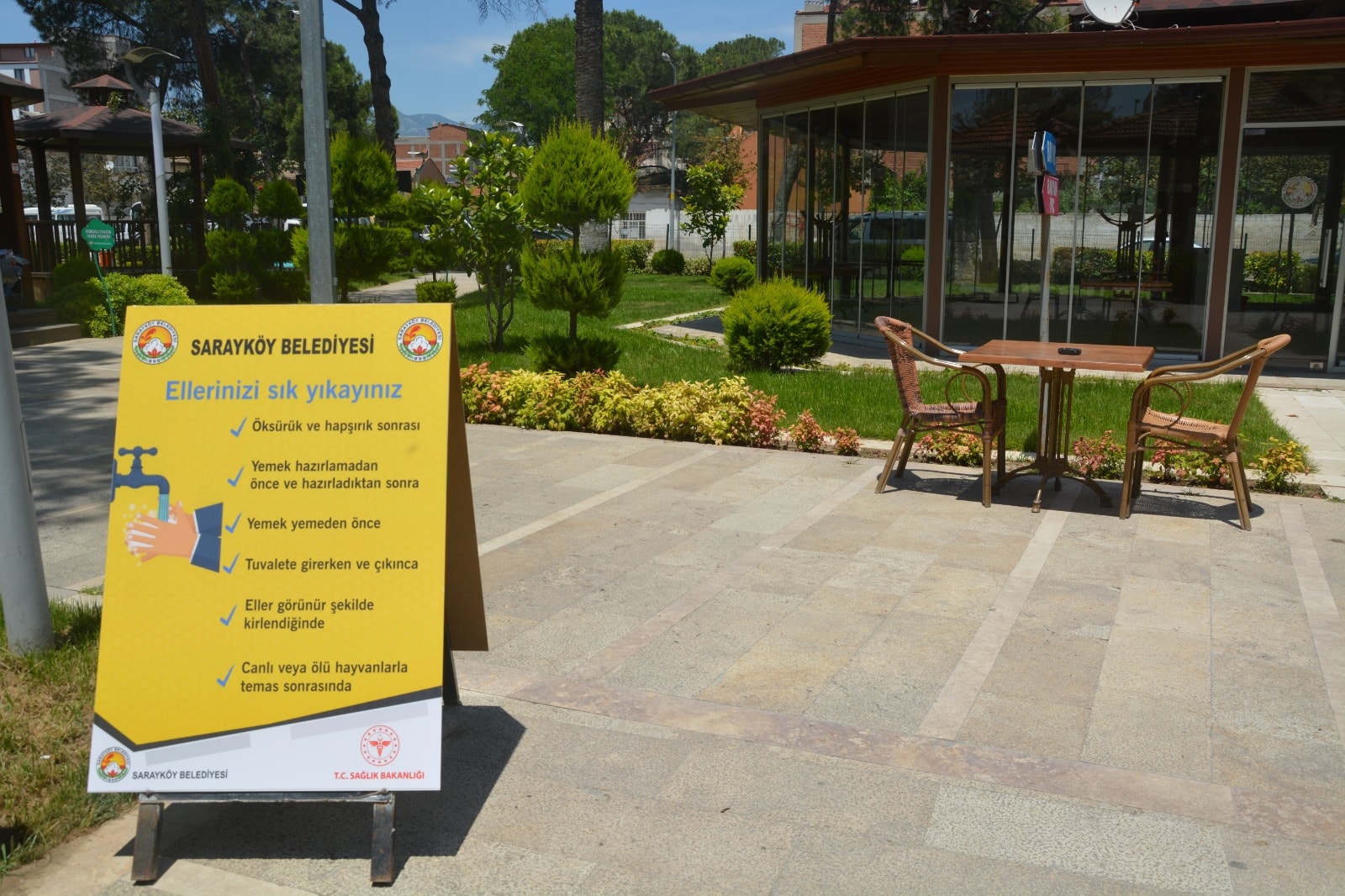 Korona virüs ile mücadele kapsamında virüsün yayılımını ve insanların bir arada toplanmasını engellemek alınan bir karar ile cafe ve parkların hizmetleri geçici bir süreliğine durdurulmuştu. Aradan geçen 2.5 ayın sonunda Sarayköy’ün en gözde parkı olan Şehit Hüseyin Kuş parkı önlemler ve tedbirler doğrultusunda yeniden hizmete açıldı. Hizmete başlamadan önce dezenfekte edilen parka, uyarıcı kuralların yazılı olduğu pankartlar ve girişlere el dezenfektanı yerleştirildi.
