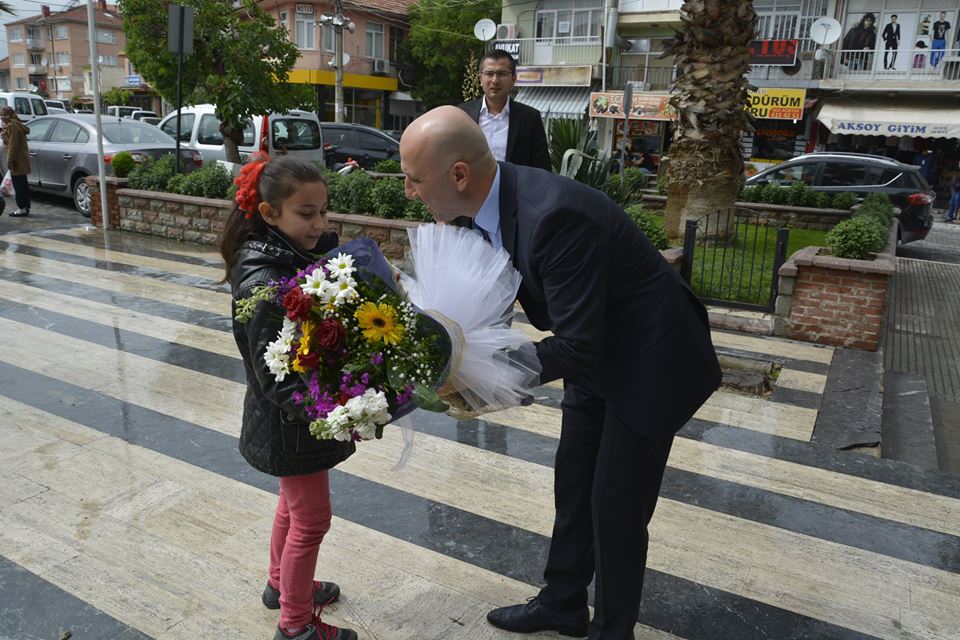 Beste Gümül’ün nezdinde tüm çocukların 23 Nisan Ulusal Egemenlik ve Çocuk Bayramı’nı kutlayan Sarayköy Belediye Başkanı Ahmet Necati Özbaş, “ Beste, ilerde öğretmen olmak istediğini söyledi, belki de bizim yerimize belediye başkanı olur kim bilir. Gazi Mustafa Kemal Atatürk geleceği çocuklarımıza emanet ediyor. Sayın Cumhurbaşkanımız da geleceğimiz olan çocuklarımıza çok önem veriyor. İnşallah onların izinden ve yolundan yürüyerek birlikte iyi bir öğrenci iyi bir yurttaş, vatandaş olacağız. Ülkemiz zor bir süreçten geçiyor. Bizim ekonomik olarak büyümemiz, yaşam standartlarımızın artması gerekiyor. Türkiye dışında umutla ülkemizin daha da büyümesini isteyen soydaşlarımız var. Bu yüzden çocuklarımızın iyi bir genç olarak yetişerek en iyi üniversitelerde en iyi şekilde okuyacaklar. Ben belediye başkanı olarak, işçisinden esnafına en iyi şekilde görevimizi yaparak bu ülkeyi kalkındırmamız lazım. Ben bugün Beste ve değerli öğretmenlerimizi ağırlamaktan çok mutlu oldum. Bu vesile ile tüm çocuklarımızın 23 Nisan Ulusal Egemenlik ve Çocuk Bayramı’nı kutluyorum. Bu bayramı bize hediye eden Ulu Önder Mustafa Kemal Atatürk’e silah arkadaşlarına ve 15 Temmuz Şehitlerimizi rahmetle anıyorum. Yaşayan gazilerimize sağlıklı mutlu yıllar diliyorum” dedi.