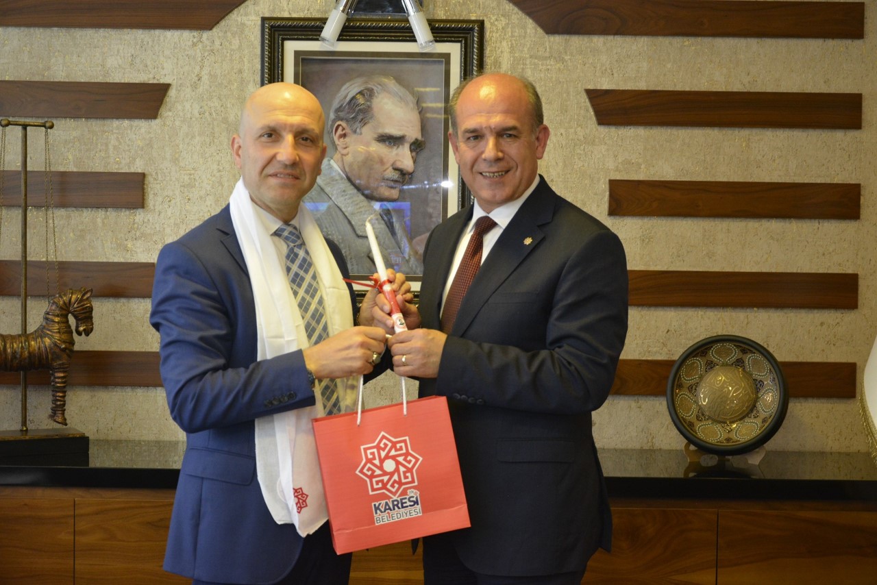 Ziyarette Karesi Belediye Başkan Yardımcısı Yusuf Hocaoğlu, Başkan Özbaş’ı 12-13-14 Ağustos'ta yapılacak olan 36. Geleneksel Kurtdereli Güreşleri’ne kırmızı dipli mumla davet etti.